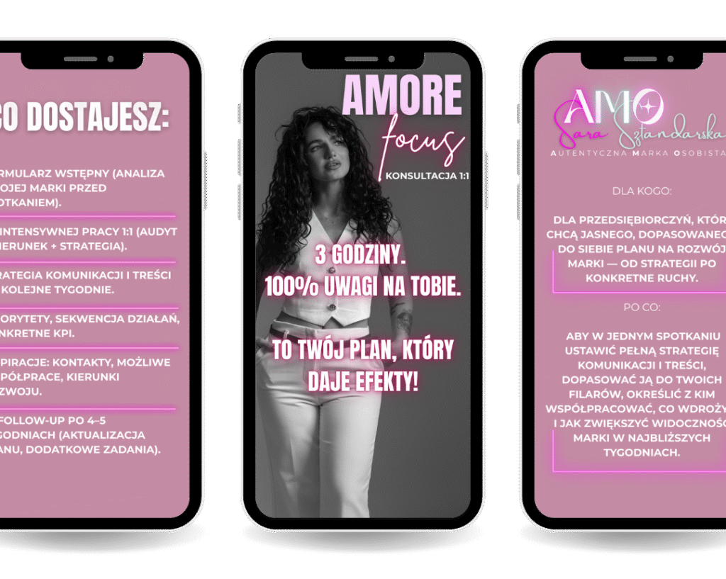 AMORE FOCUS to intensywna sesja 1:1, po której wiesz: co, jak, kiedy i dlaczego zrobić – w Twojej marce, z Twoimi zasobami.